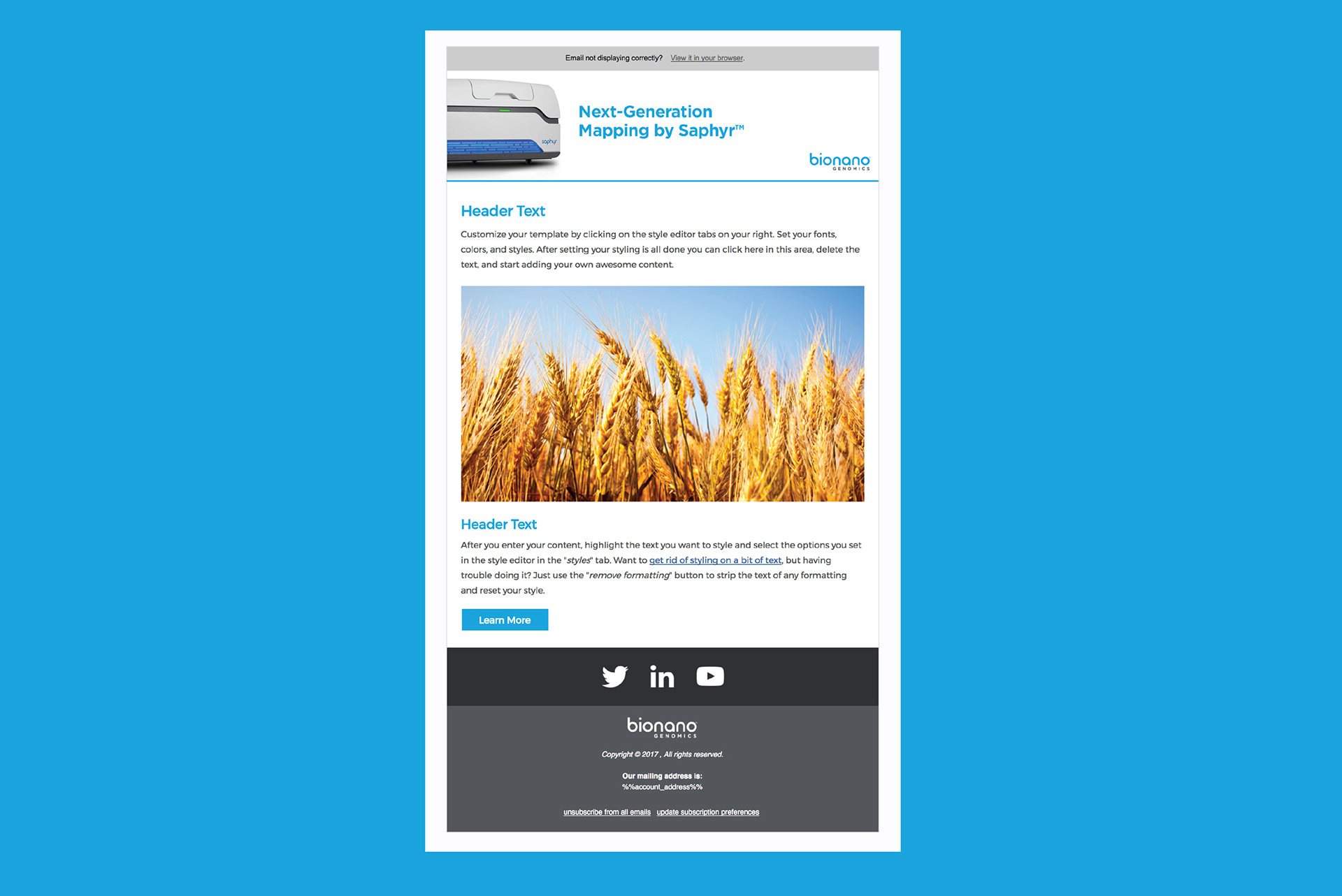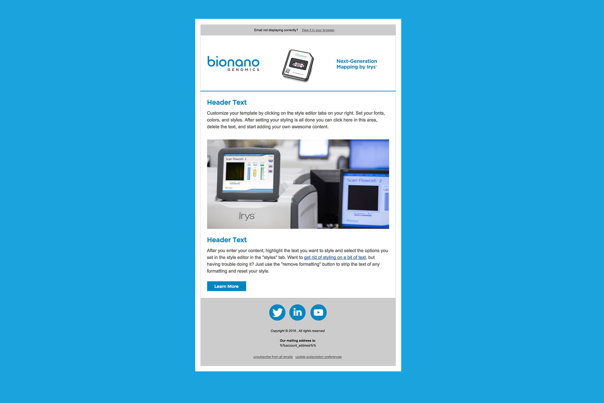 Client: Bionano Genomics Agency: Russell Email banner and template design.
