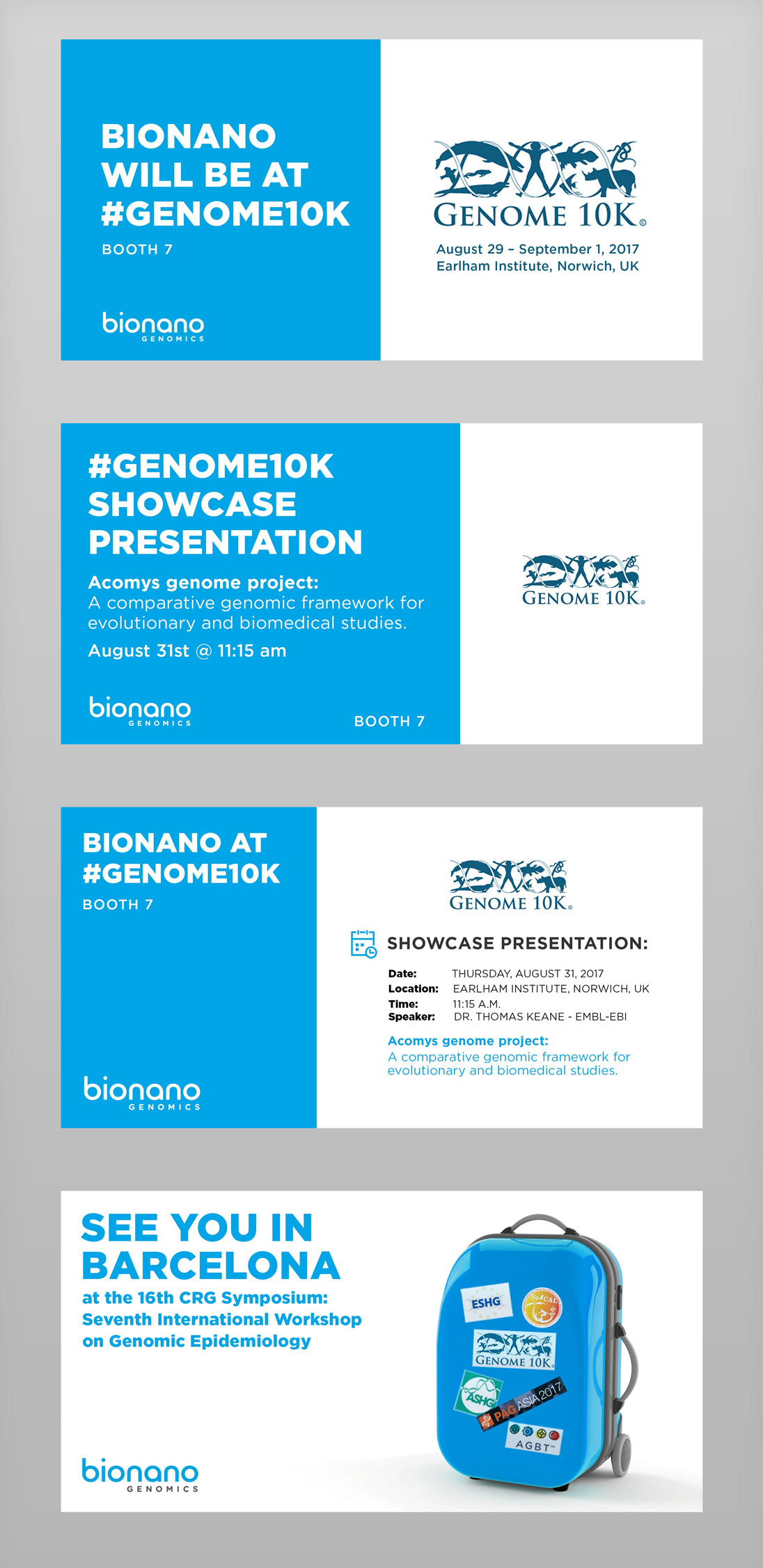 Client: Bionano Genomics Agency: Russell Twitter social media banners. Illustration, graphic-design Illustration and design promoting Bionano Genomics at Geome10k
